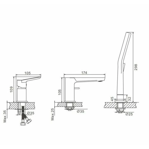 Главная Интернет-магазин Сантехника Смесители и комплектующие Смеситель для ванны на борт BELZ B66715-3 оружейная сталь (4)