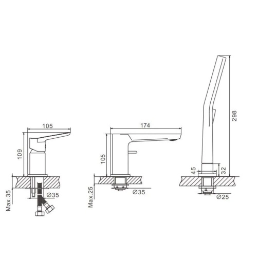 Отверстий для монтажа 3