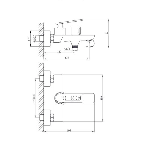 Главная Интернет-магазин Сантехника Смесители и комплектующие Смеситель для ванны RUSH Palm PL2530-44 с коротким изливом хром (10)
