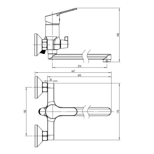 Главная Интернет-магазин Сантехника Смесители и комплектующие Смеситель для ванны RUSH Sky SK5720-51 с длинным изливом (10)