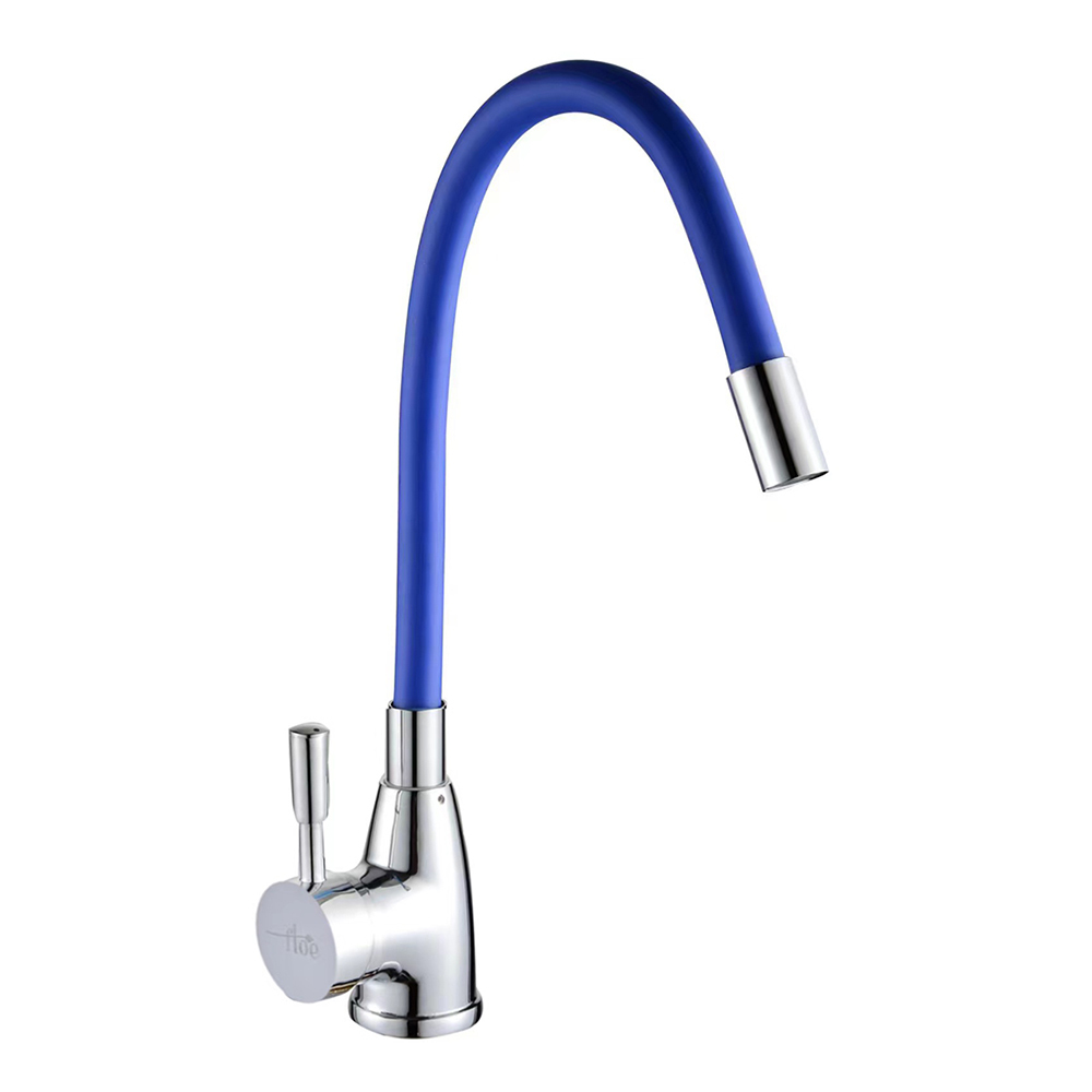 Смеситель FLOE FK234-DB для кухни, 40 мм, на гайке, с боковой штыревой ручкой, с гибким синим изливом