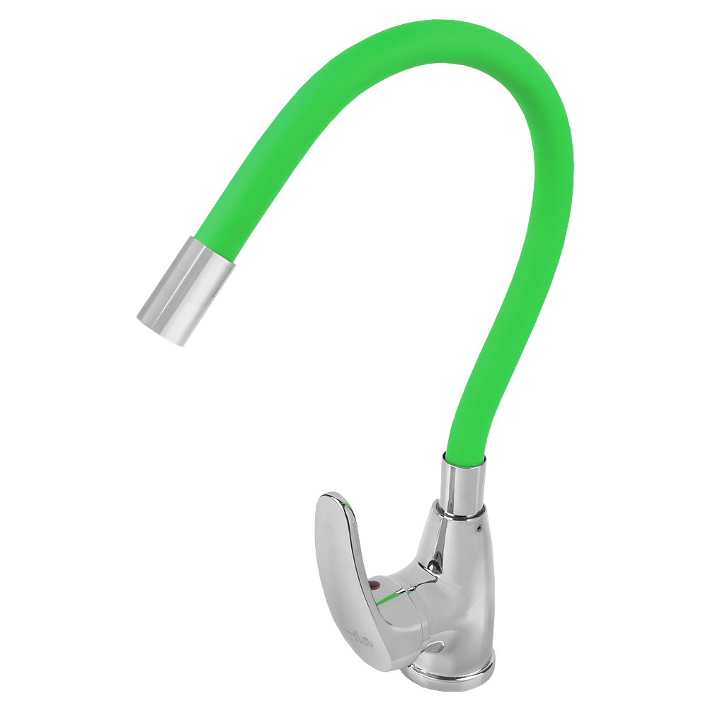 Главная Интернет-магазин Сантехника Смесители и комплектующие Смеситель FLOE FK234-GG для кухни, 40 мм, на гайке, с боковой металлической ручкой, с гибким салатовым изливом