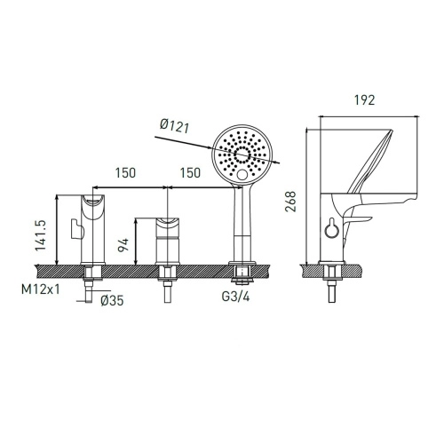 Смеситель GROSS AQUA Space для ванны на борт на 3 отверстия 1209288С