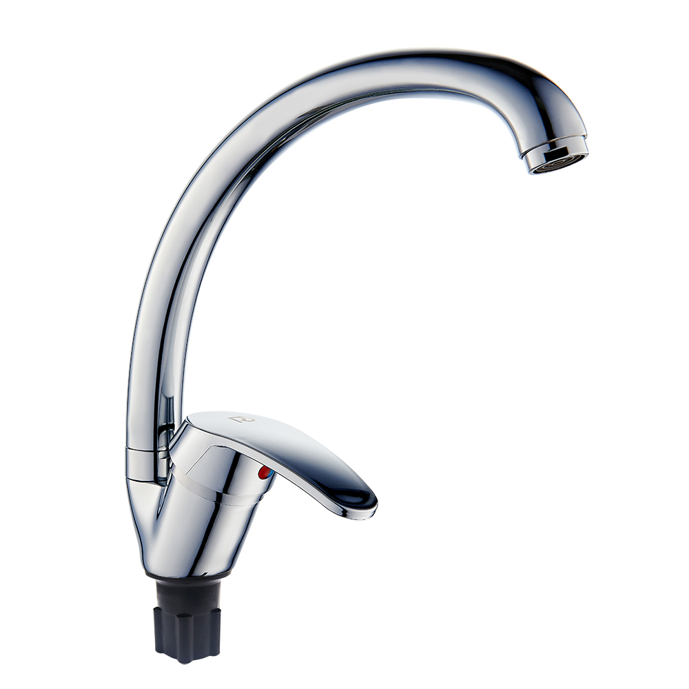 Однозахватный смеситель ROEGEN RC014Fдля кухни с боковым расположением ручки типа "С" из прочного пластика с устойчивым никель-хромовым покрытием.