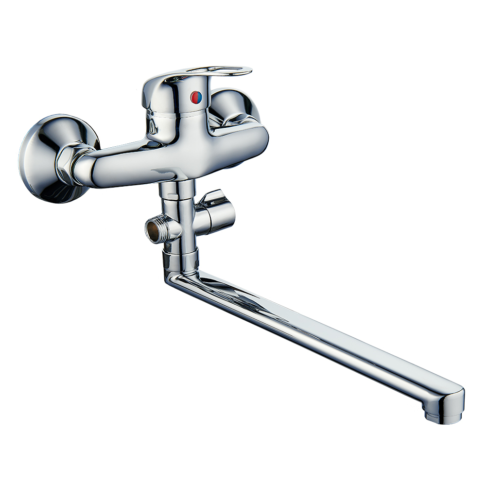 Однозахватный пристенный смеситель ROEGEN RC110B для ванны с ручкой типа "С" из прочного пластика с устойчивым никель-хромовым покрытием.
