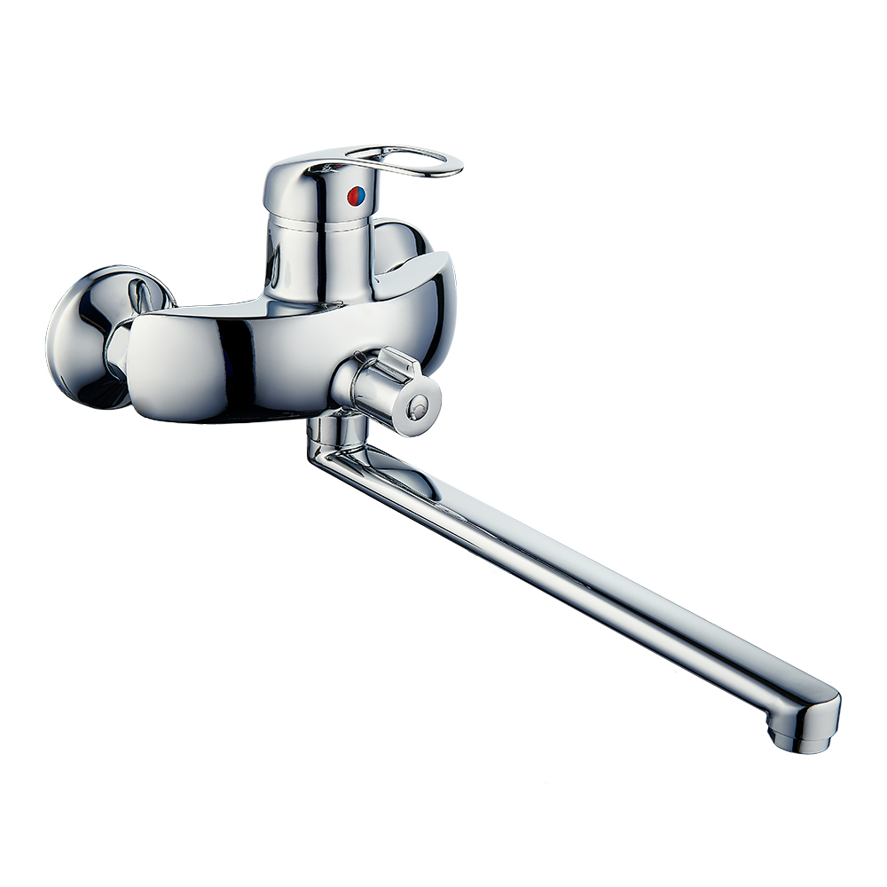 Однозахватный пристенный смеситель ROEGEN RC110F для ванны с ручкой типа типа "С" из прочного пластика с устойчивым никель-хромовым покрытием.