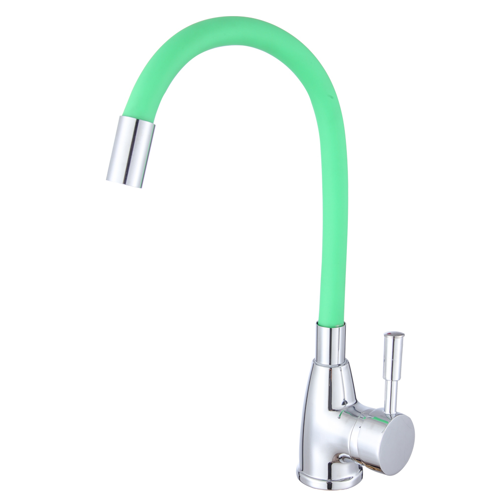 Однозахватный смеситель ROEGEN RD014G для кухни с боковым расположением ручки, на гайке, с гибким салатовым изливом.