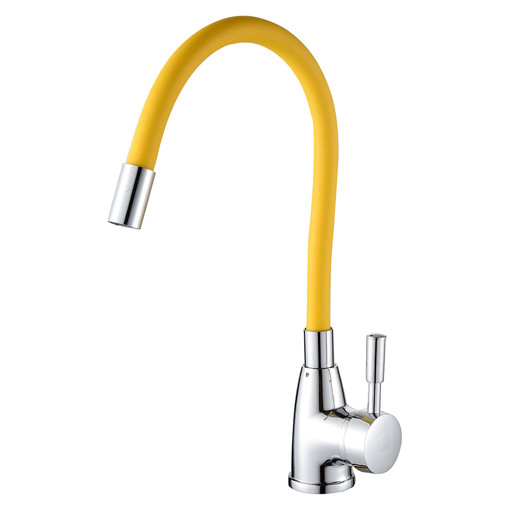 Однозахватный смеситель ROEGEN RD014Y для кухни с боковым расположением ручки, на гайке, с гибким желтым изливом.