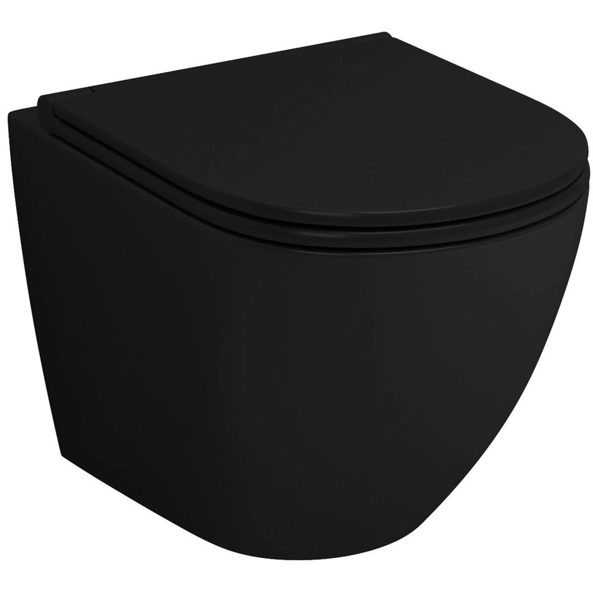 Унитаз подвесной Grossman торнадо GR-4455BMSQ, 490х370х360 мм, черный, матовый, безободковый, сиденье микролифт