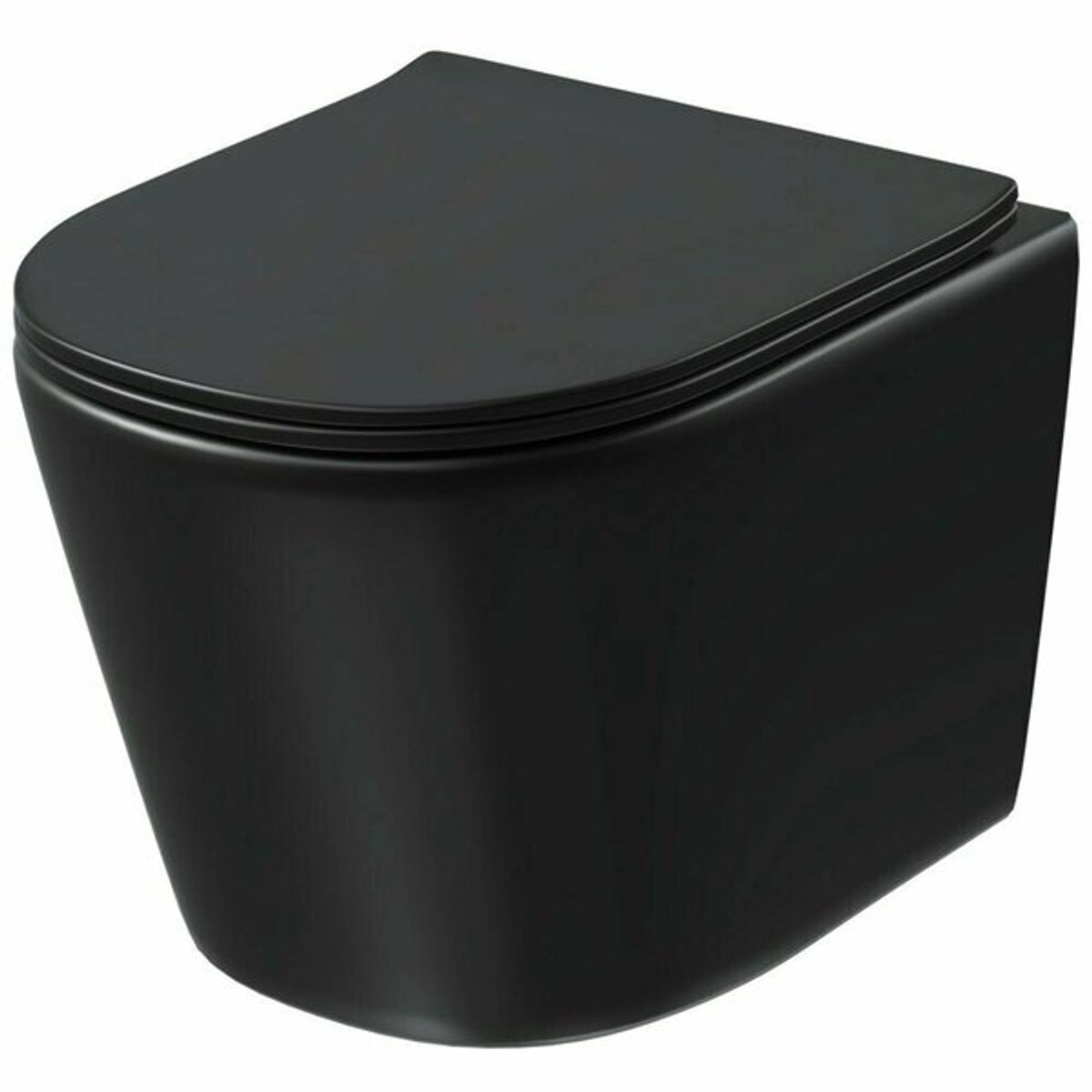 Унитаз подвесной Grossman торнадо GR-4477BMSQ, 485х360х330 мм, безободковый, сиденье микролифт, черный, матовый